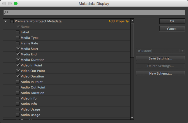In premiere you can access all of the metadata for your individual shots. This allows you (the editor) to easily organize your footage and make it easier to sort through what you want and what you want to cut out. With my footage, I started out by selecting which info I wanted to be displayed about the footage. For example, I know all of my footage was shot at 24fps, so this didn't need to be shown.